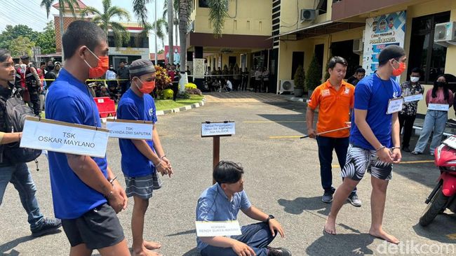 Polisi menggelar rekonstruksi kasus pengeroyokan yang menewaskan Rendy Surya Irawan (16) di halaman Polres Bantul. Pemilihan lokasi rekonstruksi dilakukan dengan pertimbangan faktor keamanan.