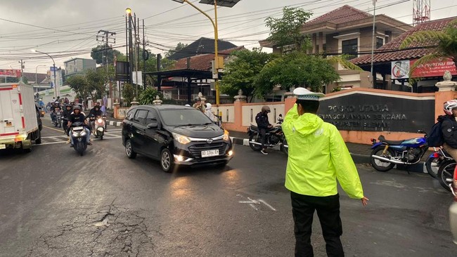 Tak hanya kawasan Kaliurang dan Jalan Kaliurang. Satlantas Polresta Sleman juga bersiaga di kawasan Ring Road Utara yang menjadi titik keluar utama kendaraan komunitas.