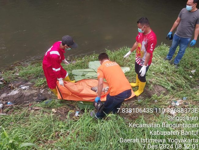 Sesosok mayat bayi laki-laki ditemukan di Sungai Gajah Wong wilayah Sareman, Singosaren, Banguntapan, Bantul. Polisi menyebut bayi itu sudah meninggal lebih dari 1x24 jam.