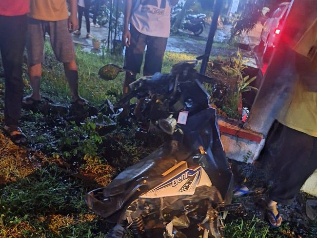 Kerasnya benturan menyebabkan sepeda motor ringsek seketika. Pemotor juga dinyatakan meninggal dunia di TKP dengan kondisi cedera kepala berat.