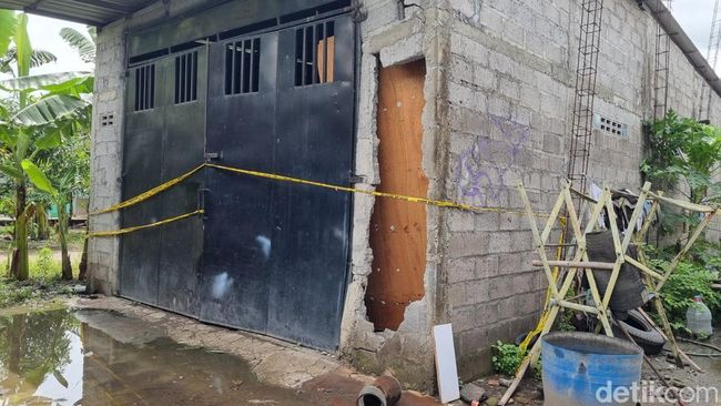 Pantauan detikJogja, tampak gudang dengan pintu besi berwarna hitam itu tertutup rapat. Tampak pula garis polisi berwarna kuning masih terpasang di depan pintu tersebut.