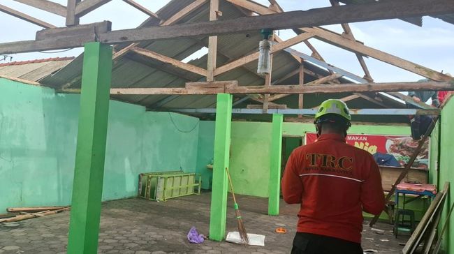 Kerusakan tersebut, kata Sutarlan, seperti pada bagian atap yang hilang usai tersapu angin kencang. Mengingat sebagian besar bangunan menggunakan atap asbes.