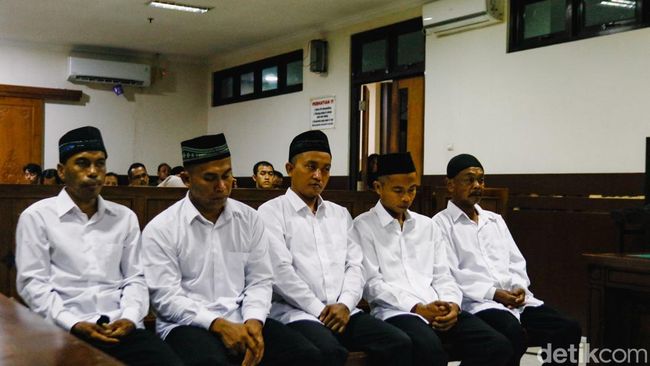 Mereka mengenakan setelan baju putih dan bercelana kain hitam. Selain itu kelimanya menggunakan peci. Kelima terdakwa yang dihadirkan yakni Suyatman, Sutriyono, Gerardus Agung Sefrian, Hari Sukaca, dan Poniman.