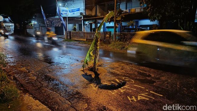 "Itu yang masang batang pisang warga sekitar. Takut ada kendaraan kejeblos lubang, karena cukup dalam dan besar," katanya.