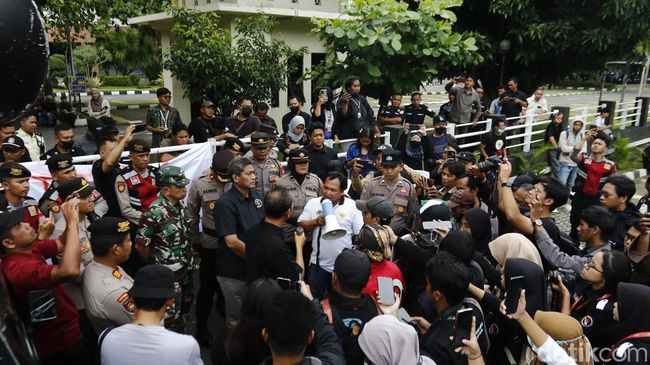 Pantauan detikJogja, ratusan massa itu tiba di kantor pajak secara bergelombang sejak sekitar pukul 10.00 WIB. Mereka kemudian berkumpul di depan gerbang masuk kantor pajak. Satu persatu perwakilan massa aksi berorasi. Nadanya sama. Meminta kenaikan PPN menjadi 12 persen dibatalkan.