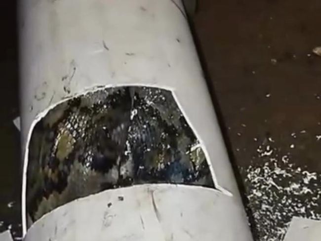 Akhirnya diketahui ular tersebut masuk ke pipa air. Warga lalu memotong pipa itu untuk mengeluarkan ular.