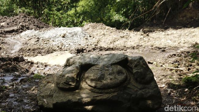 "Kemarin pas ada pengerukan jalan ini kebetulan ada ditemukan itu sepotong batu yang itu memang ada bentuk arca tapi sekarang sudah diamankan," kata Mujimin saat ditemui wartawan di lokasi penemuan batu, Senin (6/1/2025).