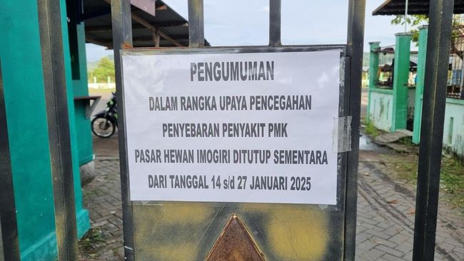 "Jadi mulai besok (14/1/2025) pagi Pasar Hewan Imogiri kami tutup selama empat belas hari ke depan," kata Kepala DKPP Bantul, Joko Waluyo saat dihubungi wartawan, Senin (13/1/2025).