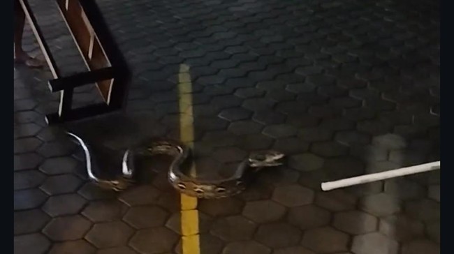 "Itu dipegang ekornya terus ada yang bawa tongkat. Sempat menyerang juga ularnya tapi akhirnya ada satu bapak-bapak yang bisa menangkap ular itu. Jenisnya sanca panjangnya sekitar 2 meter lebih, gede itu ularnya," katanya.