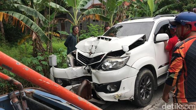 SB mengatakan pascatabrakan mobilnya terdorong cukup jauh dan baru berhenti setelah menabrak pohon. Sedangkan truk nahas itu meluncur masuk ke pekarangan rumah warga.