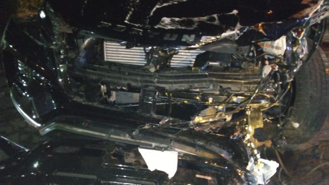 "Setelah oleng dan menabrak dua motor dan satu mobil, mobil Fortuner menabrak pohon," ujarnya.