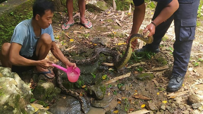 "Nah itu sumber air satu-satunya bagi penduduk situ. Mata air ini buat minum, kebutuhan cuci. Jadi warga minta ularnya harus ketangkap," ucap dia.