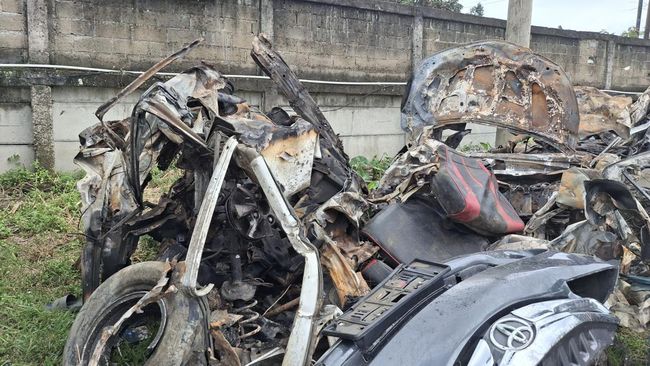 Saat dia keluar, mobilnya belum terbakar. Dia kemudian dibawa oleh ambulans yang datang. Sugiarti menyebut suaminya menjadi korban meninggal dunia.