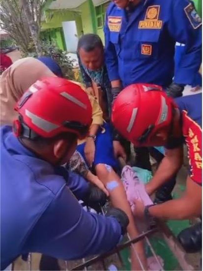 Video seorang siswi di Pacitan, Jawa Timur, kakinya terjepit besi grill penutup selokan viral di media sosial. Murid itu kemudian diselamatkan pemadam kebakaran (damkar).