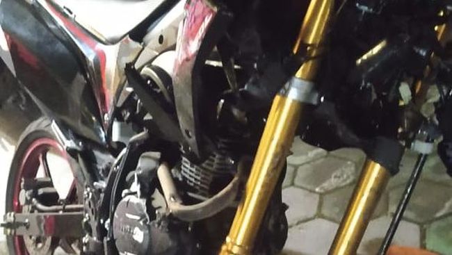 "CRF sampai nekuk bodinya karena benturan keras sekali. Penyok pada seluruh bagian motor sisi depan. Saat ini masih ditangani Satlantas Polres Bantul," katanya.