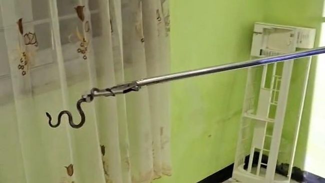 "Untuk evakuasi butuh waktu sekitar dua jam karena harus membongkar AC. Kalau jenis ularnya itu ular cicak dengan panjang sekitar 70 sentimeter," ujarnya.
