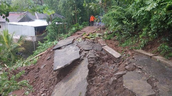 "Tanah yang longsor berada di bawah jalan desa cor blok, karena itu jalan desa itu ambrol," ucapnya.