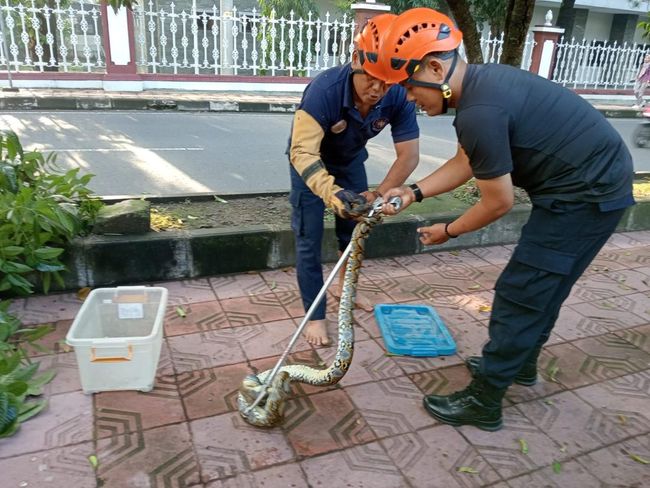 "Evakuasi 10 menitan, tidak agresif. Itu dievakuasi sanca kembang panjangnya sekitar 2,5 meter," ujarnya.