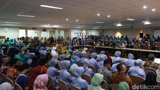 Aksi walk out dilakukan oleh para pegawai saat Dirut RSUP Dr Sardjito memberikan penjelasan kepada para pegawai yang hadir. Tiba-tiba sejumlah nakes keluar disusul nakes lainnya. Para nakes itu tampak tak senang dengan penjelasan yang diberikan.