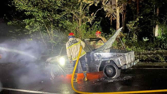 "Betul, kejadian pada hari Sabtu (5/4) pukul 20.00 WIB bertempat di tanjakan Bukit Bego Jalan Imogiri, Dlingo telah terjadi Kebakaran mobil Volkswagen 181/182 Kurierwagen tahun 1976," kata Kasi Humas Polres Bantul AKP I Nengah Jeffry Prana Widnyana kepada wartawan, Minggu (6/4/2025).