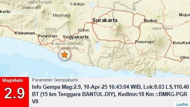 "Info Gempa Mag:2.9, 10-Apr-25 16:43:04 WIB," tulis BMKG DIY dalam keterangannya, Kamis (10/4/2025).