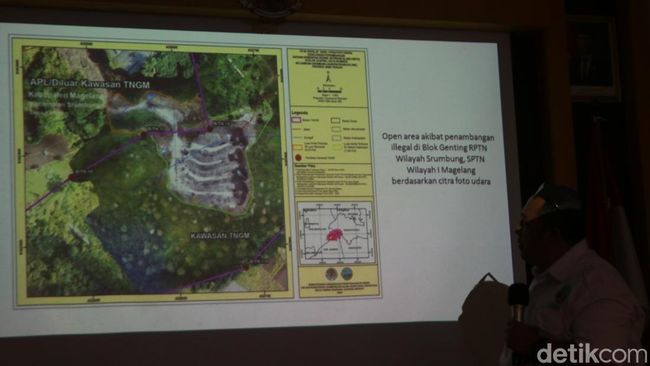 "Yang jelas yang terjadi bahwa korporasi yang terjadi di dalam Taman Nasional itu semuanya ilegal. Ilegal dan sebagian besar terjadi adalah di Jawa Tengah. Di wilayah Magelang. Itu daerah Srumbung termasuk Senowo di sana, Kecamatan Dukun, Ngori dan sebagainya," ujar dia.