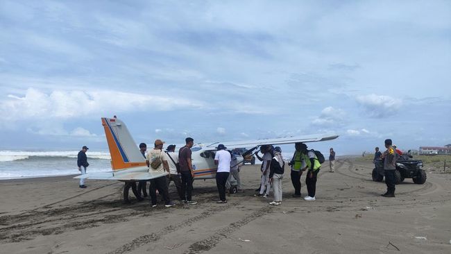 Sebuah pesawat terbang mendarat darurat di area Kampung Turis di pesisir pantai Pangandaran. Diduga pesawat itu mengalami mati mesin. Begini cerita saksi.