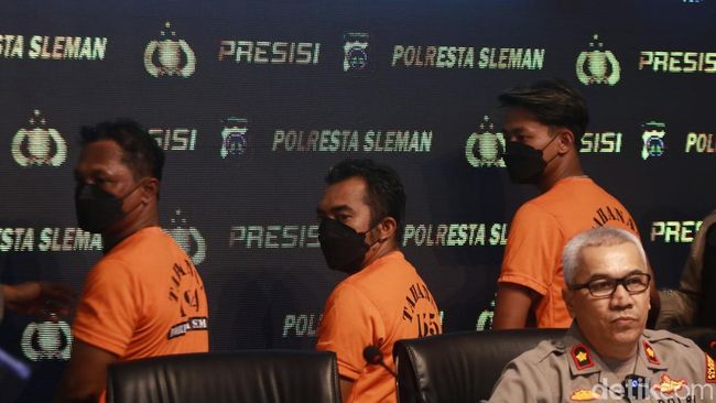 Ketiga tersangka turut dihadirkan dalam rilis kasus di Maporlesta Sleman. Saat proses rilis berlangsung, dua dari tiga tersangka membuat gestur geleng kepala hingga menunjuk-nunjuk saat polisi membacakan kronologi kejadian.