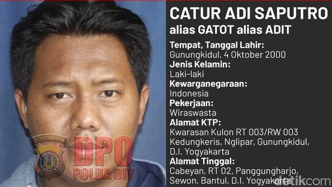 Kabar tersebut diunggah oleh akun resmi Instagram Polda Daerah Istimewa Yogyakarta (DIY) @poldajogja kemarin, Rabu (28/5/2025). Meski beralamat di Gunungkidul, Gatot disebut tinggal di Cabean, Panggungharjo, Sewon, Bantul.