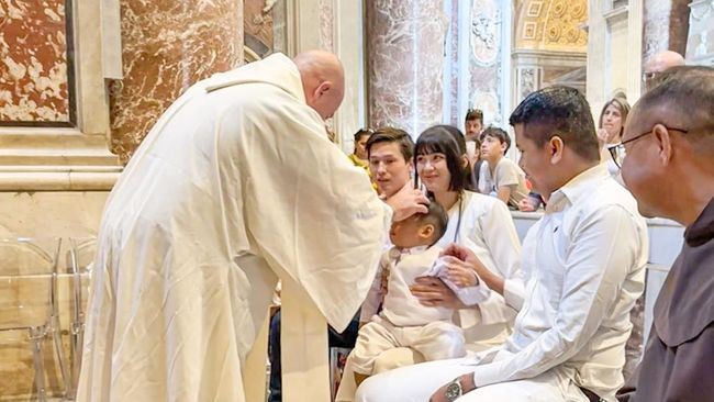 Prosesi baptis itu berlangsung di era kepemimpinan Sri Paus Leo XIV, yang belum lama ini dilantik sebagai pemimpin umat Katolik sedunia. Sakramen baptis itu dipimpin pastor Paroki Basilika Santo Petrus, Padre Benoit Alloggia, O.S.B pada Senin, 26 Mei 2025 lalu.