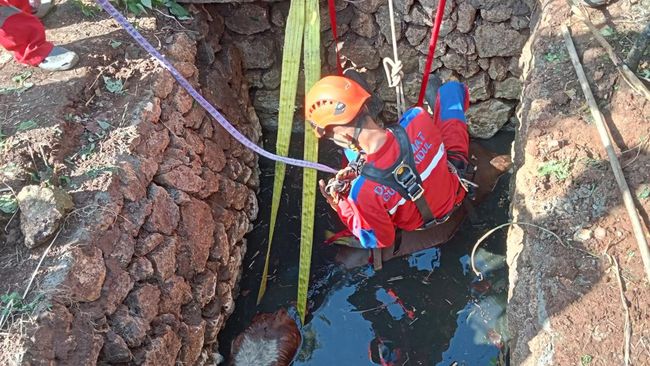 "Tapi karena ukuran sapi yang besar evakuasi memakan waktu 1,5 jam. Sedangkan untuk sapinya sendiri berhasil dievakuasi dengan kondisi selamat," imbuhnya.