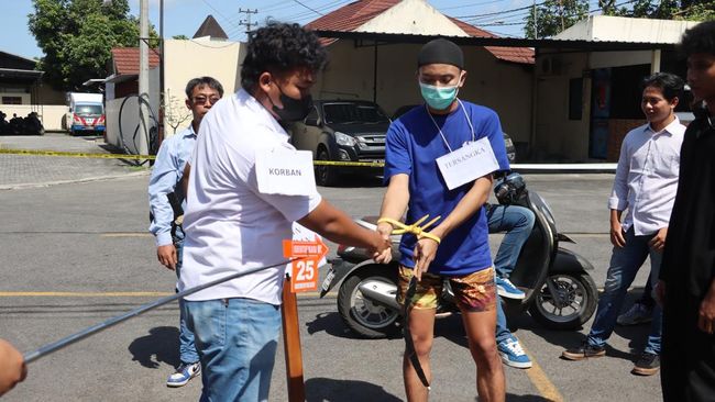 "Lalu ada reka adegan menyebabkan korban meninggal itu adegan 22. Ternyata pelaku mengayunkan celurit beberapa kali ke tubuh korban yang mengakibatkan luka pada bagian dada kiri," ujarnya.