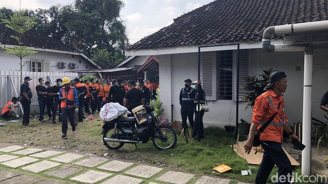 Puluhan petugas yang hadir kemudian mulai mengosongkan rumah dan langsung mengangkut barang-barang ke tiga truk besar yang telah disiapkan. Sembari berjalan pengosongan, beberapa orang juga memasang pagar seng.