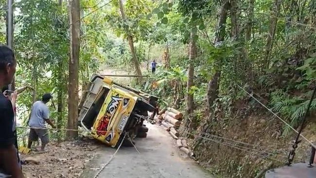 Kecelakaan tunggal dialami satu unit truk di perbukitan Menoreh, Kulon Progo, Daerah Istimewa Yogyakarta (DIY). Truk tersebut terguling setelah berupaya melewati tanjakan.
