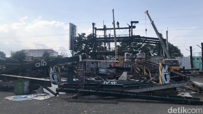Pantauan detikJogja di TKP ABA, siang ini hanya menyisakan beberapa tiang yang masih berdiri. Sisanya sudah selesai dibongkar dan siap untuk dipindahkan. Bongkaran bangunan itu masih berada di area TKP ABA.