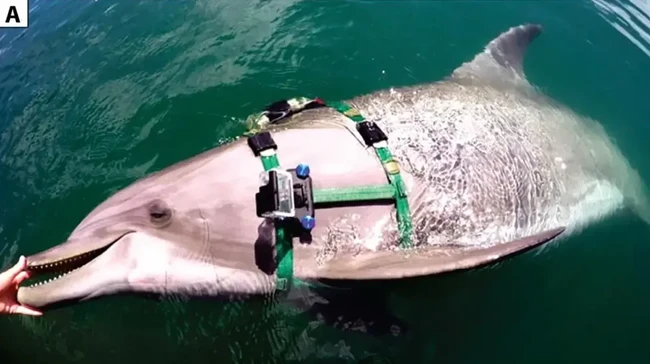 Dikutip dari detikInet, ini adalah pertama kalinya ilmuwan mendokumentasikan perilaku tersebut. Para peneliti di National Marine Mammal Foundation di San Diego, California, memasang kamera GoPro pada sepasang lumba-lumba hidung botol, yang telah dilatih untuk menemukan ranjau dengan sonar mereka.