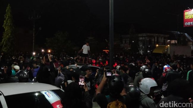 Tak hanya itu, kerumunan massa juga di depan Mapolda DIY juga merusak mobil polisi yang lewat di lokasi. Sempat terlihat mobil bertulis Polresta Surakarta yang melintas menjadi sasaran amuk massa.