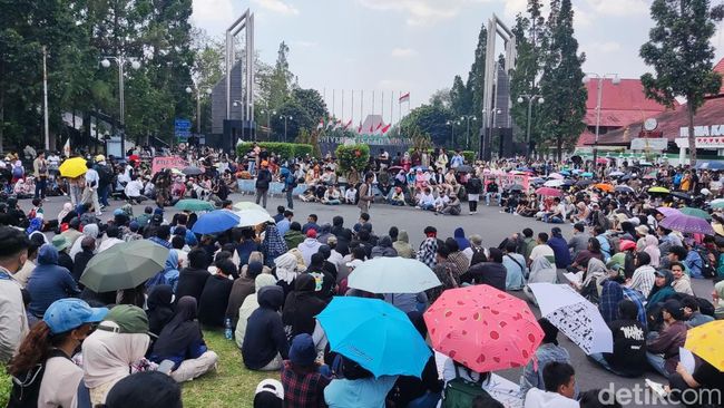 Pantauan detikJogja, Senin (1/9/2025), massa aksi sudah memenuhi area Bundaran UGM sejak pagi. Mereka berasal dari berbagai kampus dan organisasi.