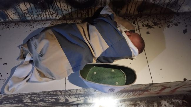 "Saat ditemukan, bayi diselimuti jilbab warna putih dan dibalut sweatshirt kombinasi warna abu-abu dan krem. Selain itu didekatnya terdapat kopiah warna putih," ucapnya.
