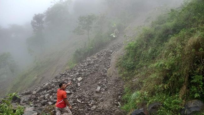 "Untuk tinggi tebing yang longsor hampir 100 meter. Adapun lebar yang longsor 5 meter dan ketebalan yang nutup jalan kurang lebih 2 meter," ujarnya.