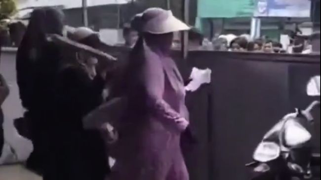 Dilihat dalam video 20detik pada Kamis (30/10/2025), tampak emak-emak mayoritas mengenakan hijab dan masker tengah menggeruduk gedung bercat putih. Mereka terdengar riuh berteriak.