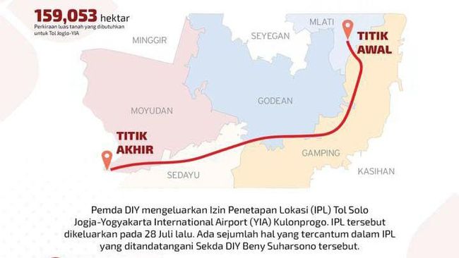 Pemerintah Daerah Istimewa Yogyakarta (Pemda DIY) telah menerbitkan Izin Penetapan Lokasi (IPL) lahan Tol untuk Seksi Jogja-Kulon Progo yang berada di Kabupaten Sleman dan Bantul. Tol itu bakal menghubungkan Kota Jogja dengan Bandara Yogyakarta International Airport (YIA).
