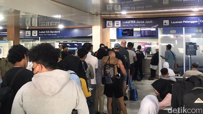 Pantauan detikJogja di Stasiun Tugu Jogja pukul 10.00 WIB, antrean di loket KA Jarak Jauh mengular hingga ke luar ruangan. Memanjang sekitar 200 meter hingga ke depan pintu masuk selatan stasiun.