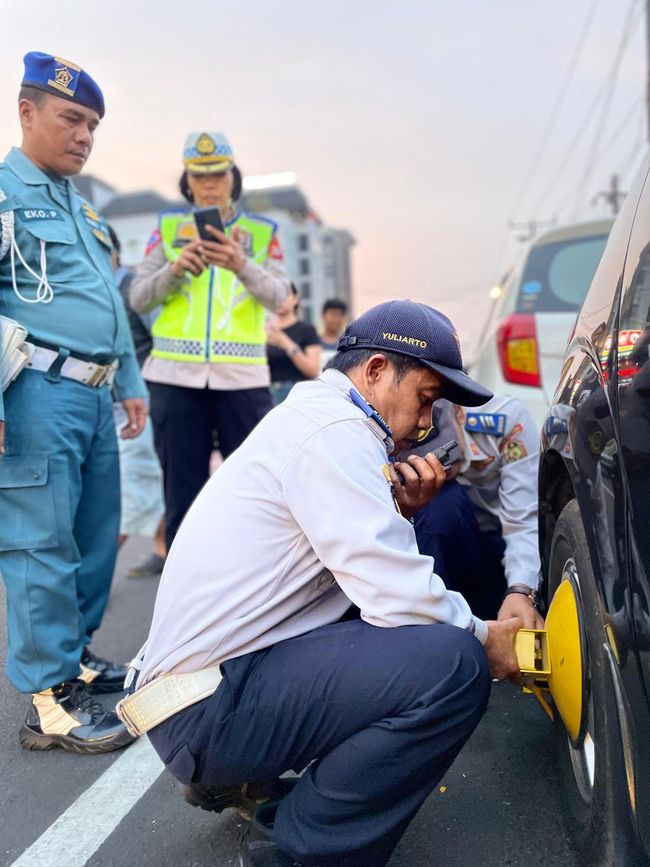 "Maka kami akhirnya harus melakukan tindakan yang pertama menempeli stiker imbauan, kedua gembosi ban, termasuk memasang gembok di mobil. Ini salah satu upaya yang dilakukan," paparnya.