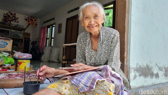 Pantauan detikJogja, tampak seorang nenek-nenek tengah duduk di pintu samping rumahnya di Pandes RT.4, Panggungharjo, Sewon, Bantul. Sembari duduk dengan posisi kaki yang diluruskan, nenek tersebut mulai mewarnai satu per satu wayang berbahan kertas karton yang tidak terlalu tebal.