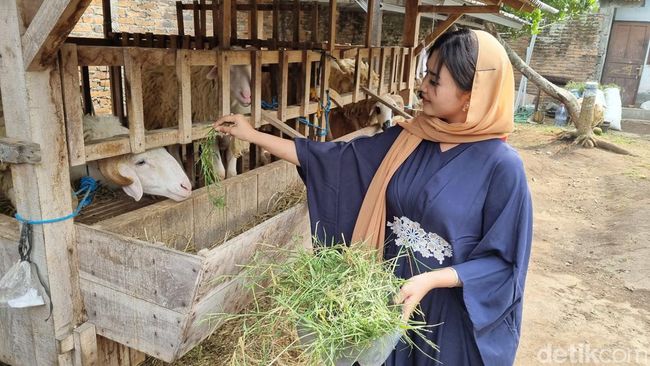 "Tidak apa-apa, tidak masalah pakai pakaian syar'i karena kan tuntutan pekerjaan juga. Jadi kalau saya senang aja sekarang pakai pakaian syar'i saat jadi SPG kambing," kata Riris kepada wartawan di kandang kambing milik Adi, Rabu (29/5/2024).