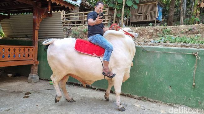 "Karena itu sapi ini saya kasih nama Satrio Bimo, artinya ksatria yang gagah. Untuk bobot Bimo ini 934 kilogram atau hampir satu ton dan jenisnya peranakan ongole (PO)," ujarnya.