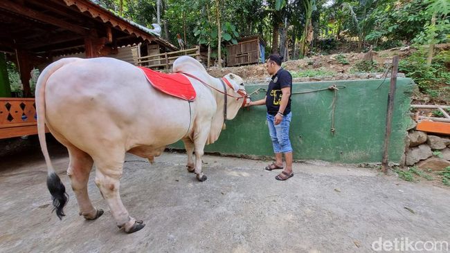 "Karena itu sapi ini saya kasih nama Satrio Bimo, artinya ksatria yang gagah. Untuk bobot Bimo ini 934 kilogram atau hampir satu ton dan jenisnya peranakan ongole (PO)," ujarnya.