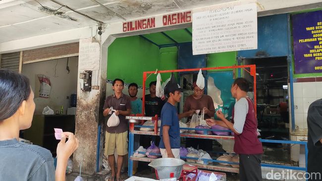 Pantauan detikJogja di Pasar Hargosari di Kapanewon Wonosari, Selasa (18/6/2024), tampak puluhan warga mengantre untuk menggiling daging. Sementara itu, pekerja di penggilingan daging tampak sibuk melayani pelanggannya.