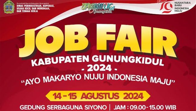 Kepala Bidang Tenaga Kerja Dinas Perindustrian, Koperasi, UMKM, dan Tenaga Kerja (DPKUKMTK) Gunungkidul, Yohanes Nanang Putranto menerangkan job fair tersebut akan diselenggarakan pada 14-15 Agustus 2024, pukul 09.00-15.00 WIB.